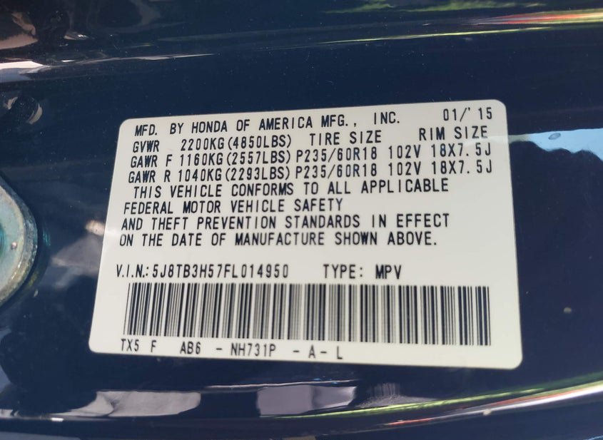 - Название лота: 2015 ACURA RDX
