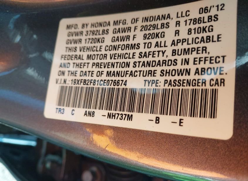 - VIN: 19XFB2F81CE076674