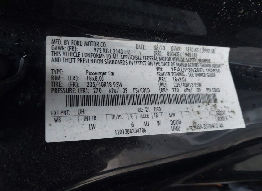 - VIN: 1FADP3N26EL152630