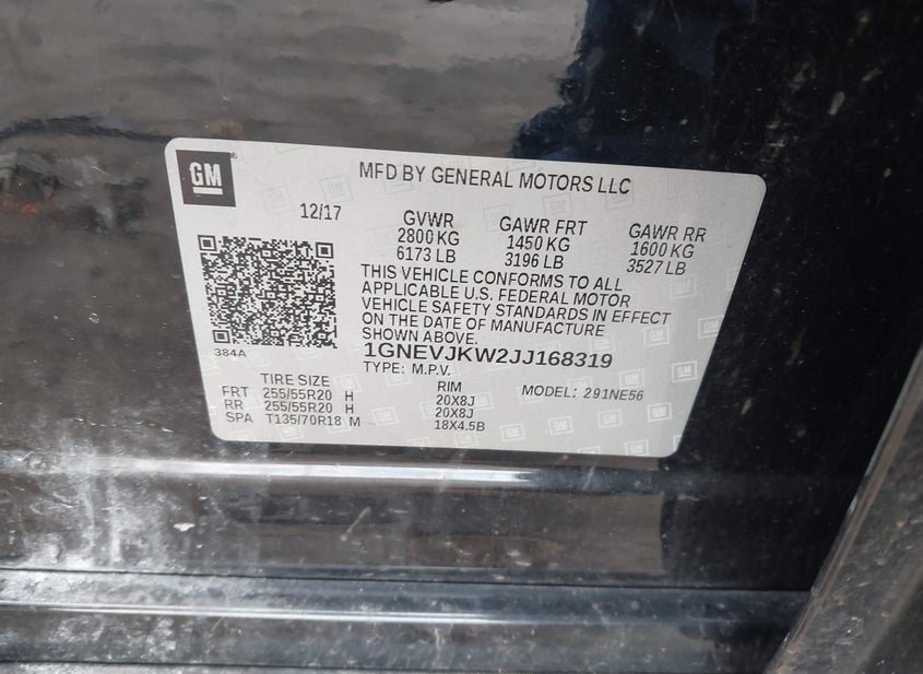 - VIN: 1GNEVJKW2JJ168319