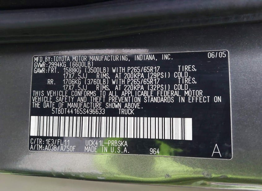 - VIN: 5TBDT44165S496633