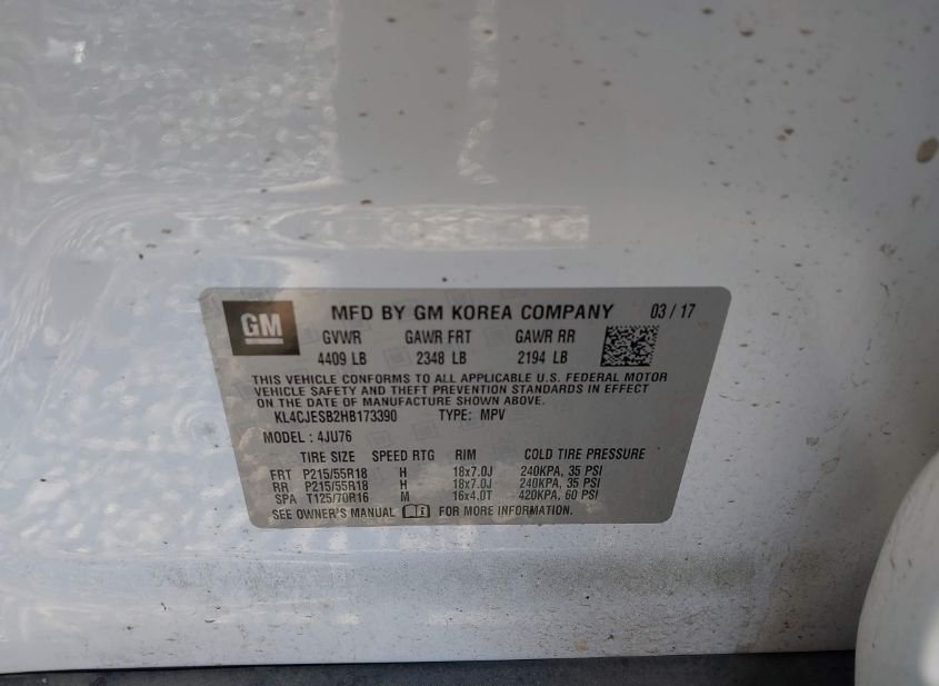 - VIN: KL4CJESB2HB173390