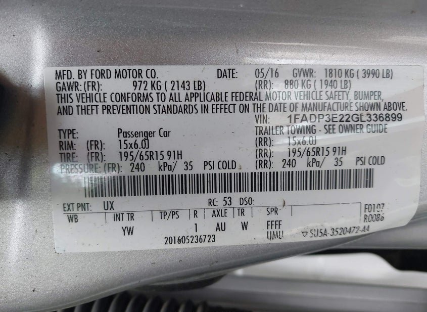 - VIN: 1FADP3E22GL336899