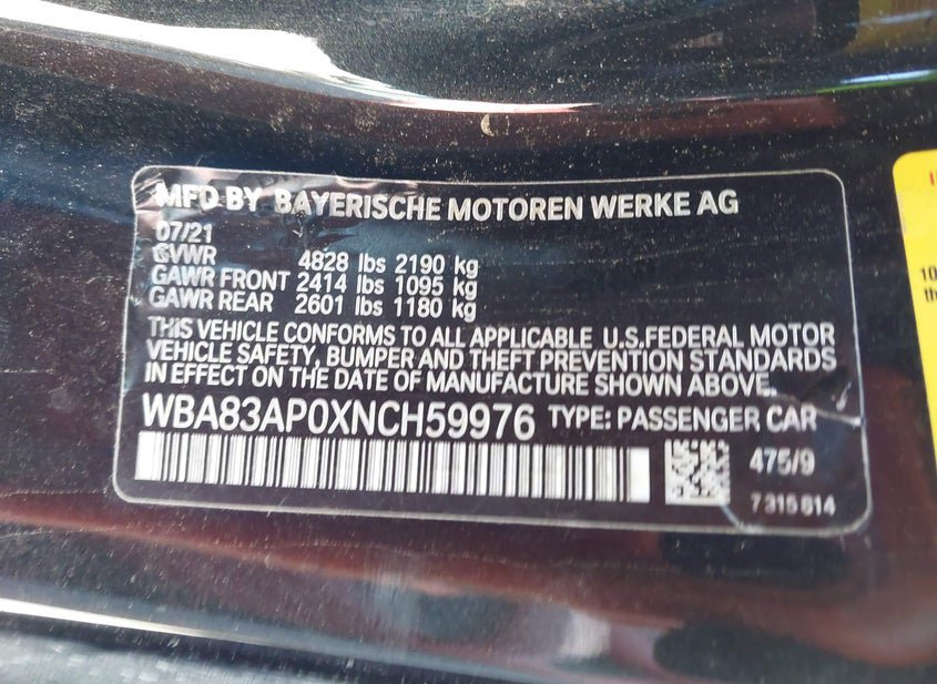 - VIN: WBA83AP0XNCH59976