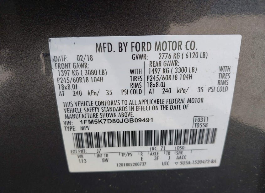 - VIN: 1FM5K7D80JGB09491