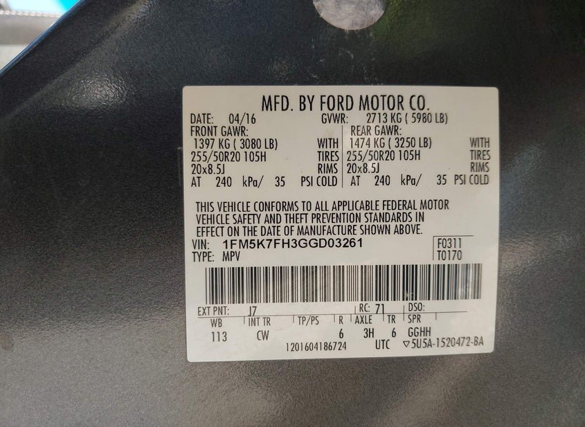 - VIN: 1FM5K7FH3GGD03261