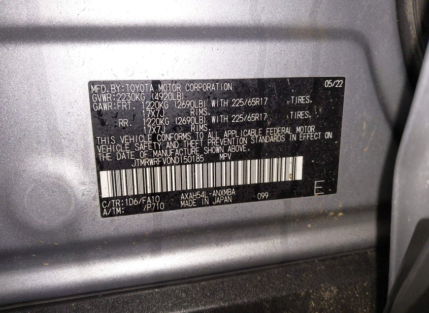 - VIN: JTMRWRFV0ND150185