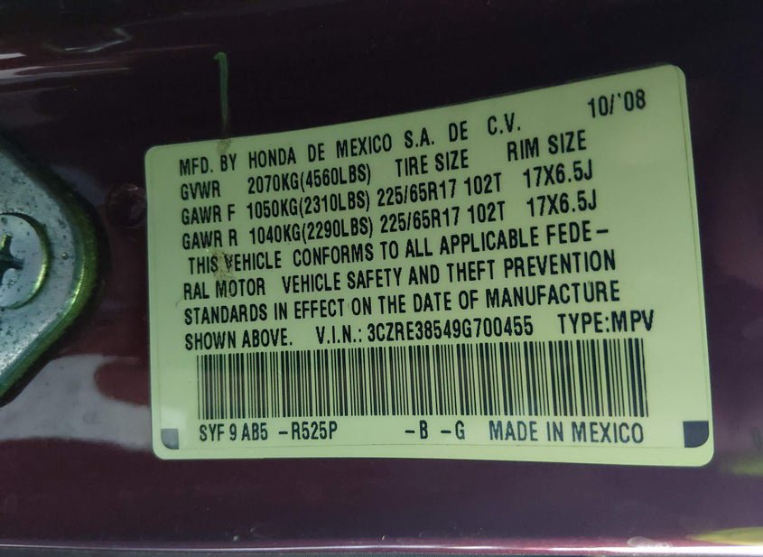 - VIN: 3CZRE38549G700455