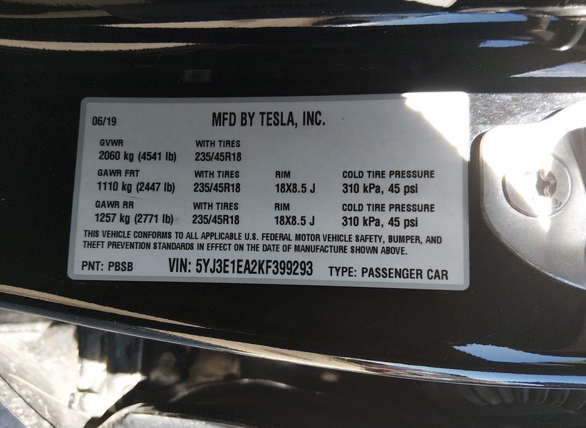 - VIN: 5YJ3E1EA2KF399293
