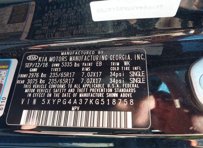- VIN: 5XYPG4A37KG518758