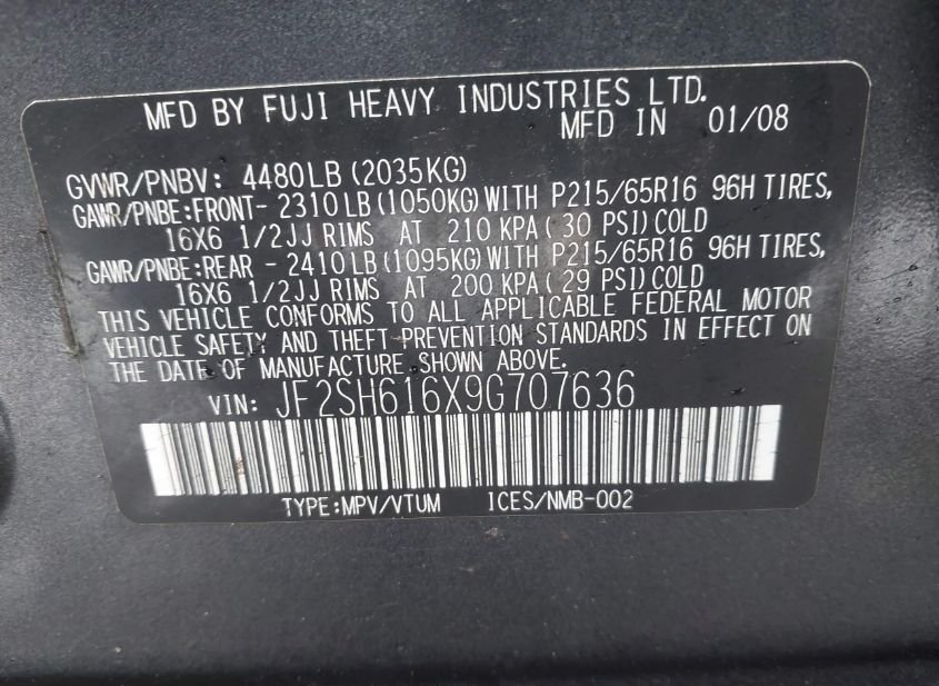 - VIN: JF2SH616X9G707636