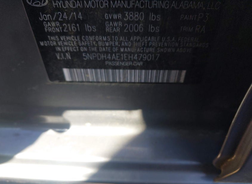 - VIN: 5NPDH4AE1EH479017