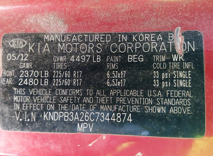 - VIN: KNDPB3A26C7344874