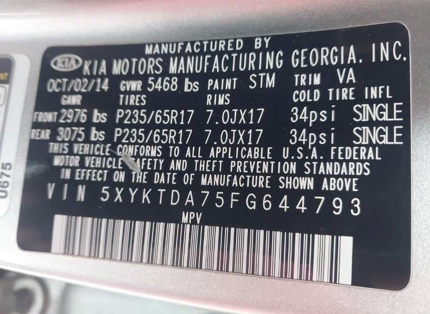 - VIN: 5XYKTDA75FG644793