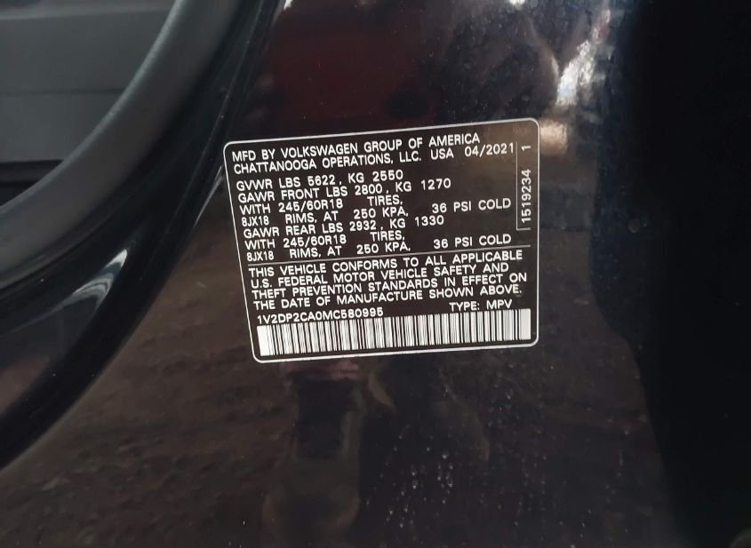 - Название лота: 2021 VOLKSWAGEN ATLAS 2.0T SE