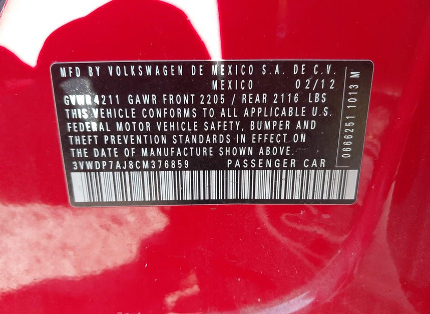 - VIN: 3VWDP7AJ8CM376859