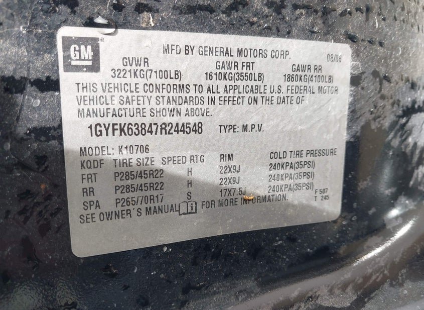 - VIN: 1GYFK63847R244548