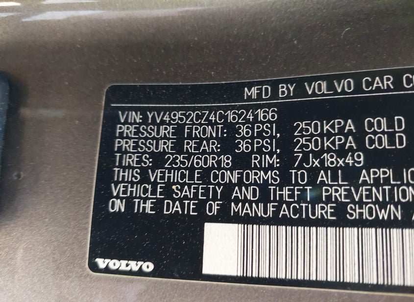 - VIN: YV4952CZ4C1624166