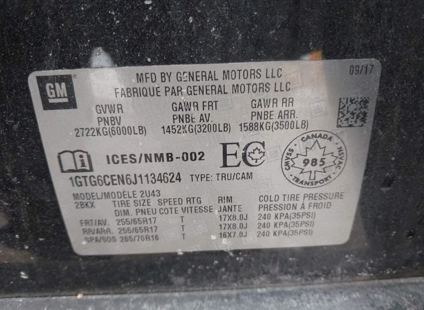 - VIN: 1GTG6CEN6J1134624