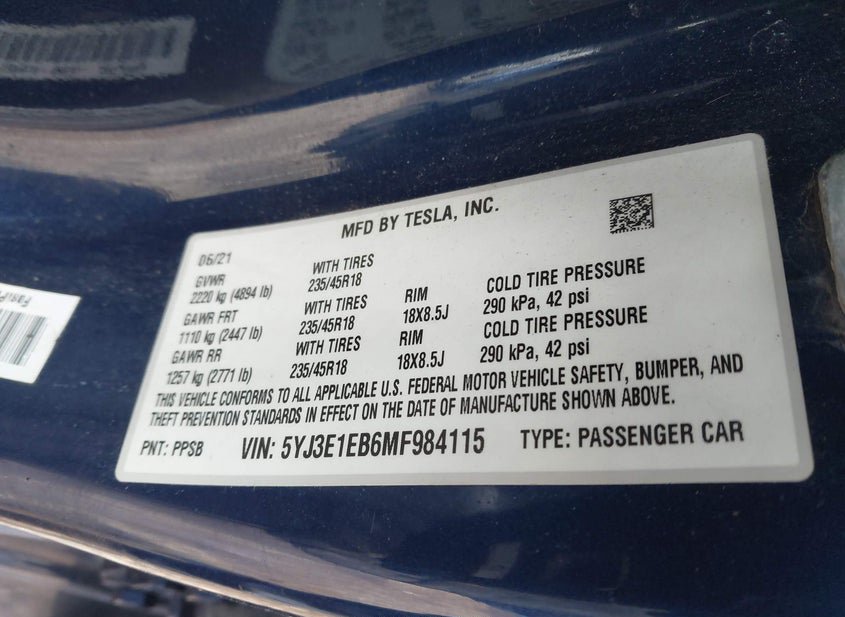 - VIN: 5YJ3E1EB6MF984115