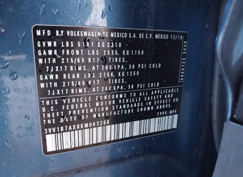 - VIN: 3VV1B7AX8KM063268