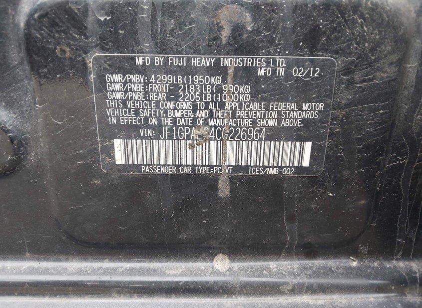 - VIN: JF1GPAL64CG226964