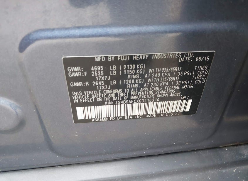 - VIN: 4S4BSAFCXG3216310