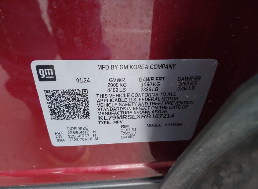 - VIN: KL79MRSLXRB167214
