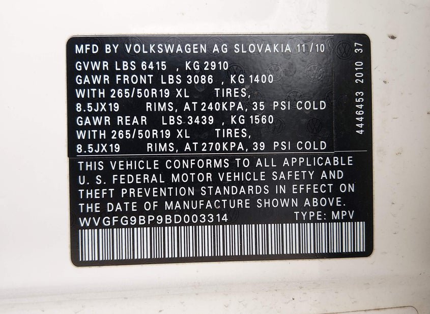 - VIN: WVGFG9BP9BD003314