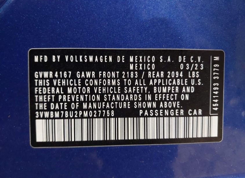 - VIN: 3VWBM7BU2PM027758