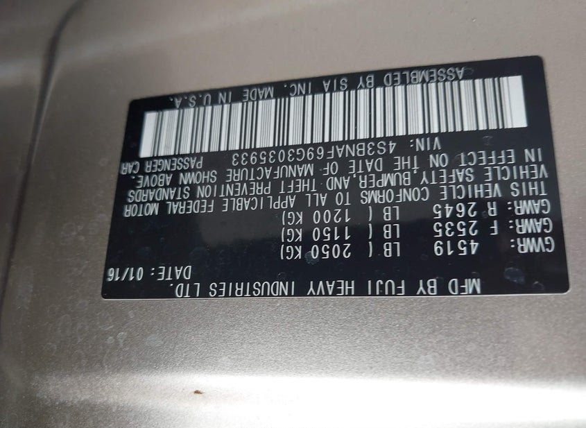 - VIN: 4S3BNAF69G3035933