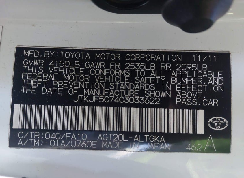 - VIN: JTKJF5C74C3033622