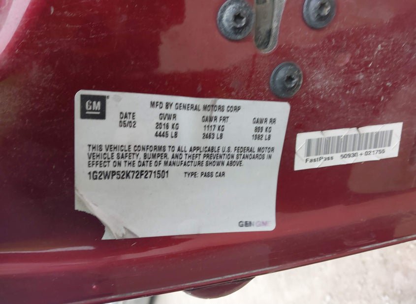 - VIN: 1G2WP52K72F271501