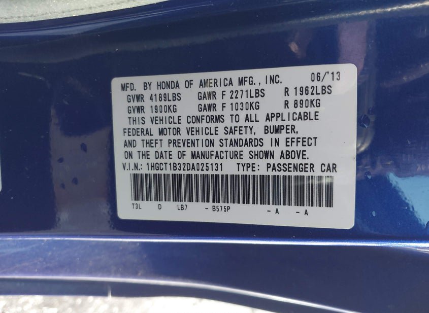 - VIN: 1HGCT1B32DA025131
