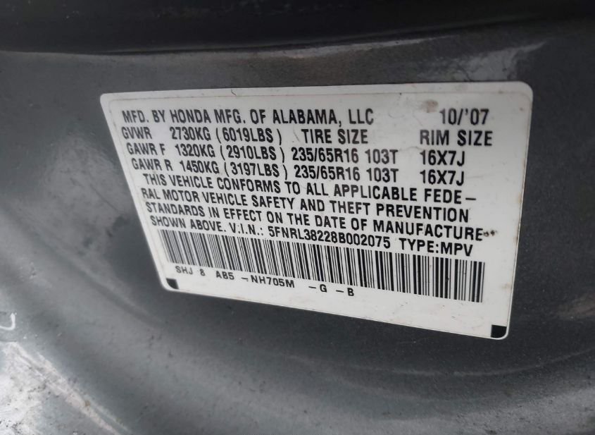 - VIN: 5FNRL38228B002075