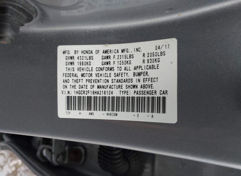 - VIN: 1HGCR2F18HA216104