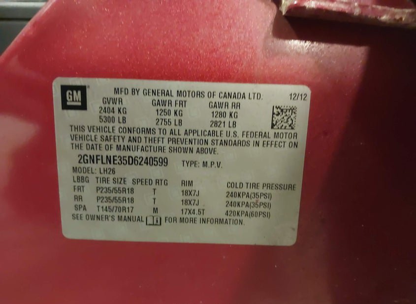 - VIN: 2GNFLNE35D6240599