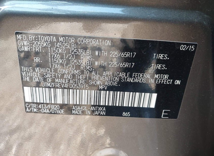- VIN: JTMZFREV4FD053915