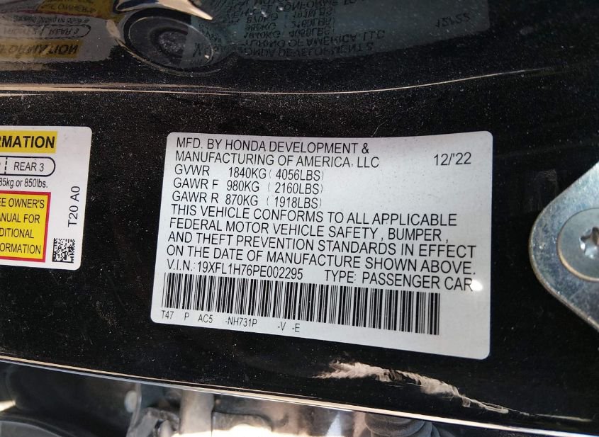 - VIN: 19XFL1H76PE002295