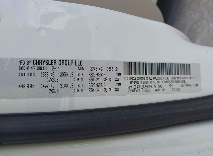 - VIN: 2C4RC1BG2FR638148