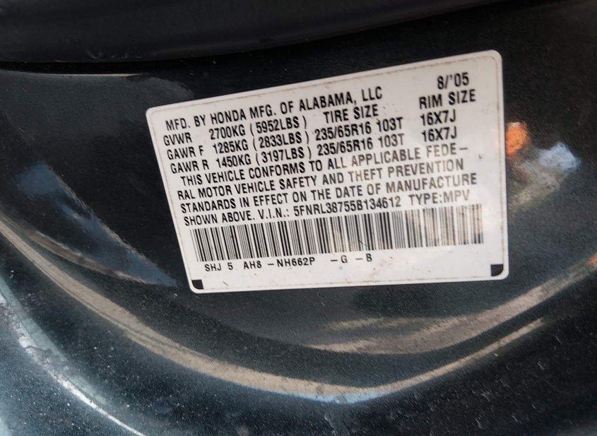 - VIN: 5FNRL38755B134612