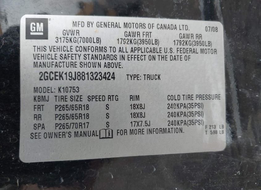 - VIN: 2GCEK19J881323424