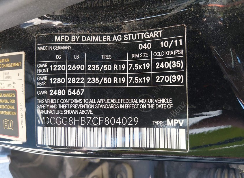 - VIN: WDCGG8HB7CF804029