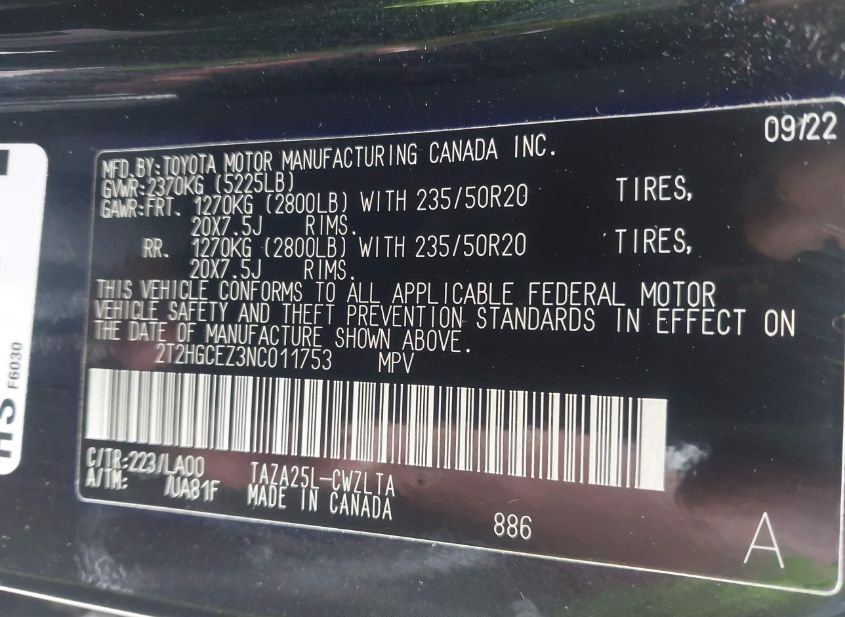 - VIN: 2T2HGCEZ3NC011753