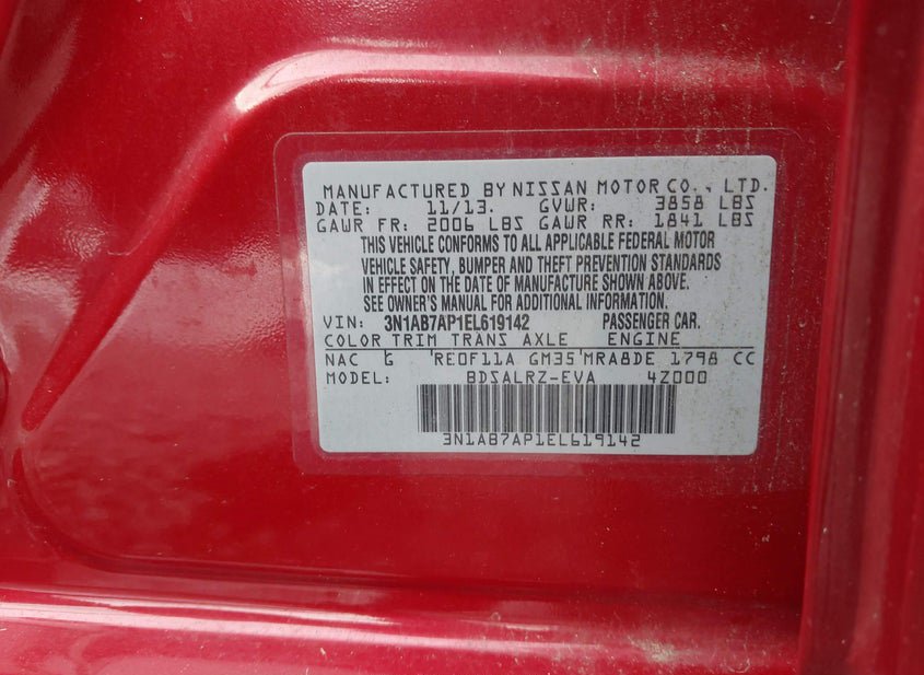 - VIN: 3N1AB7AP1EL619142