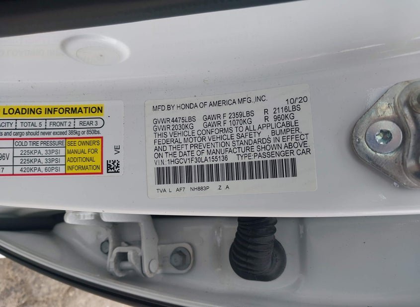 - VIN: 1HGCV1F30LA155136