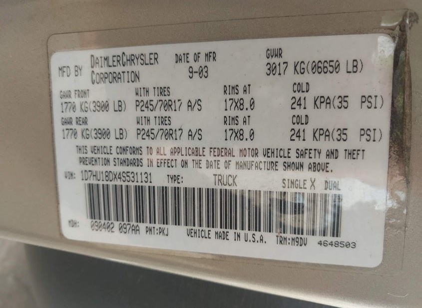 - VIN: 1D7HU18DX4S531131
