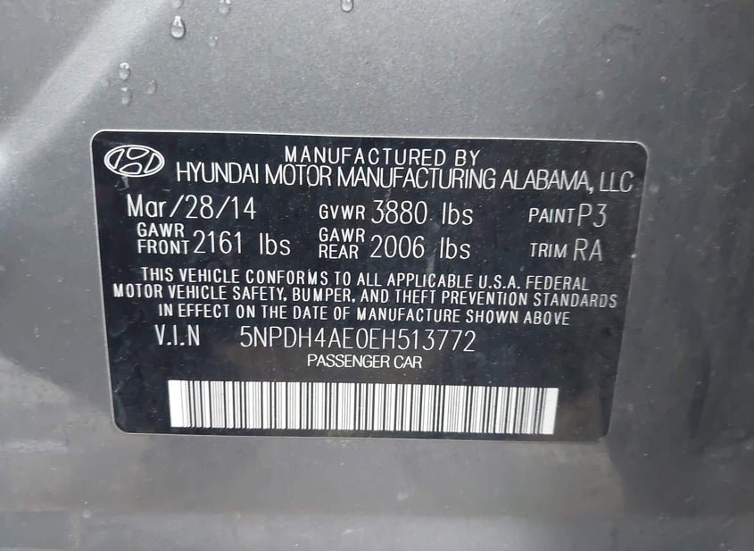 - VIN: 5NPDH4AE0EH513772