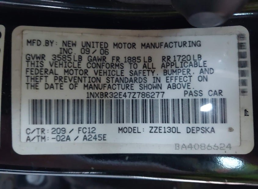 - VIN: 1NXBR32E47Z786277