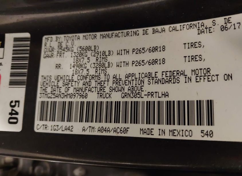 - VIN: 3TMGZ5AN3HM097960